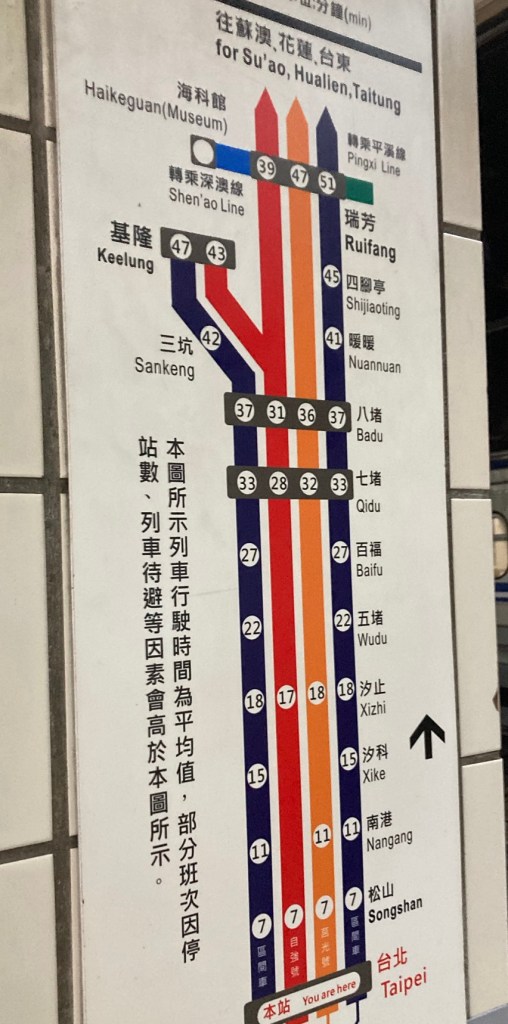 瑞芳駅へは宜蘭・花蓮・台東方面行きの4番月台(プラットフォーム)から乗車